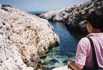 Un sentier abrupt mais pas très difficile mène ensuite au bord de l'eau. L'endroit est désert, l'eau très transparente. Un excellent souvenir.